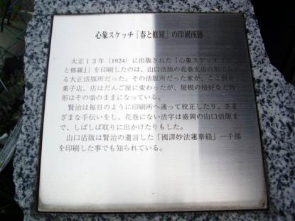 「宮沢賢治ゆかりの地 案内標柱」心象スケッチ「春と修羅」の印刷所跡