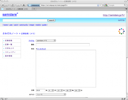 すぐにご自分の「さみだれノート(ブログ)」が作成され、
