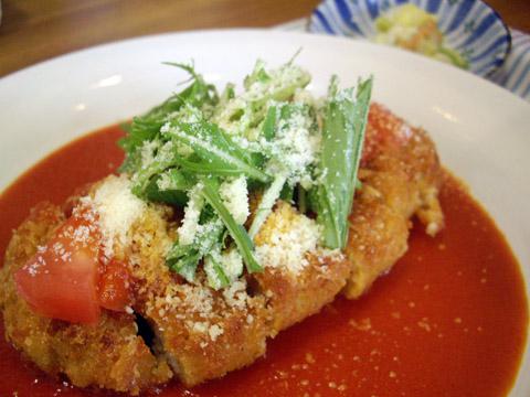 今回は「ポークカツレツイタリアン850円」を食べてみた。揚げたてトンカツにトマトソースとチーズをたっぷりかけて、洋風とんかつの出来上がり!やわらかいカツとトマトソースのうま味と酸味がマッチしてました。ごはんがうまい(^_^)v