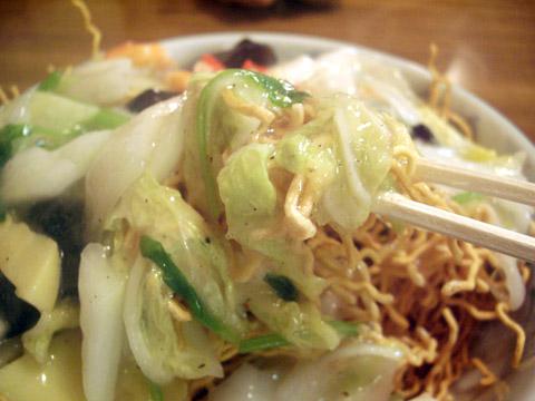 ▼「一品香」でエビ揚げ焼きそばを食べる