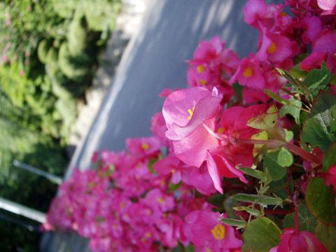 夏も終わりに近づいていましたが、天気はよく、ほとんど真夏のような良い日でした。道路脇にはすみれ(だと思ってます・・・)が咲き並んでいて、とってもきれいです。この道は、釜淵の滝などへむかう遊歩道へも続いています。