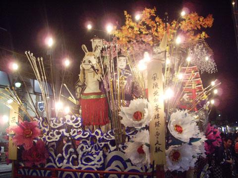 よく、滝が流れている様子を何らかの仕掛けで実際に流れているように見せたりしていると、「ほほぅやるなぁ」などと偉そうに見ております(^_^;) たまに、山車のてっぺんでハンドル操作をしている人もいたように記憶してます。・・・曖昧な記憶ですが、やりて〜って思ってました!