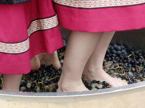 選ばれたワインガールたちが、キャッキャッいいながら楽しそうにぶどうを踏んでおります・・・。