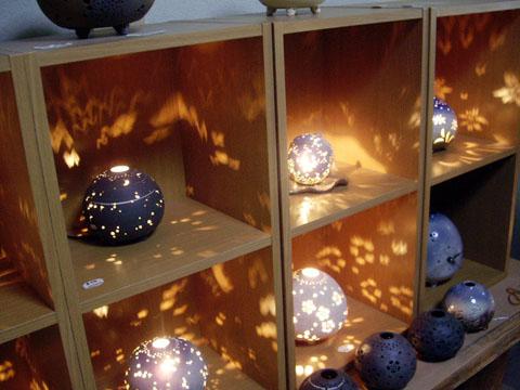 早池峰焼 星工房さんのランプシェードがきれいでとっても素敵でしたので、写真を数枚紹介します!きれ〜 玄関なんかに飾っても素敵でしょうね・・・。