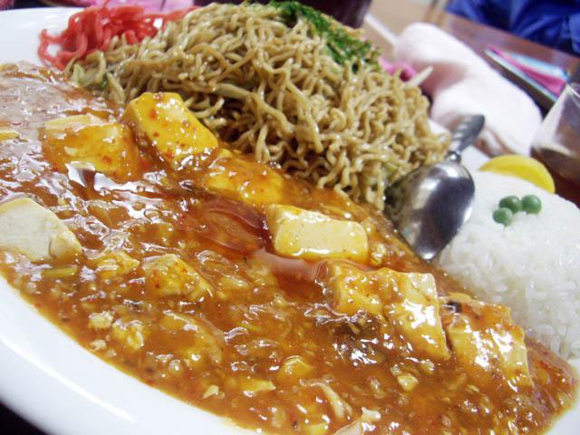 焼きそば・麻婆豆腐・ライスの夢のコラボレーションです。なんと630円也。すごい・・・。