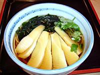 若竹はわかめと合わせて「若竹そば」、さらに若竹の旬の味覚をダイレクトに味わえるように、「若竹のお刺身」でもご用意しております☆