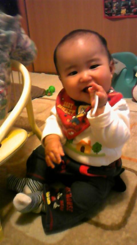 離乳食あまり食べたがらないんですが、甘いくだものやかぼちゃ、サツマイモは好きみたいで良く食べるソラくんです(^_^)