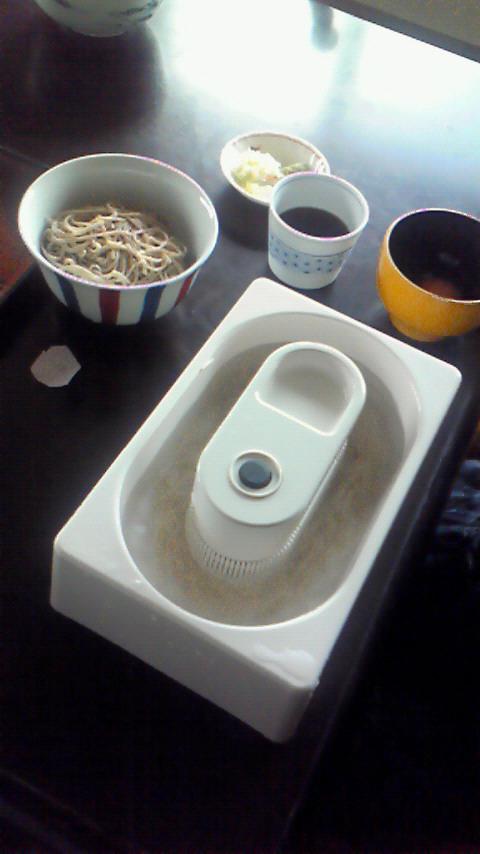 ミニ流しそうめん機に、そうめんでわなく「お蕎麦」です♪