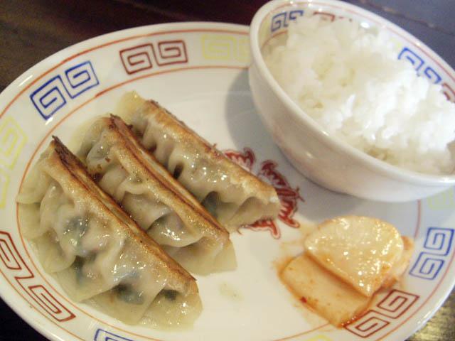 餃子三個・ライス・漬物の3点セットがつきます!