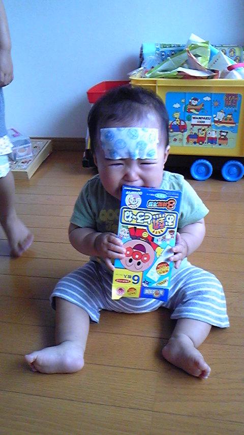 辛そうに泣いてすがりついてくるのですが、抱っこくらいしかしてやれないし。冷えピタ貼ってみたけど、ご覧のとおり余計泣かれました(ノ><)ノ
