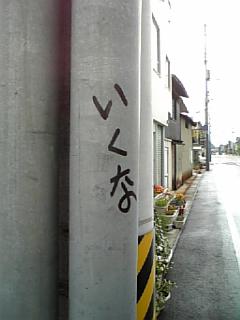 白い鯛焼き屋さん「尾長屋」さんを曲がるとすぐ当店『かじや』なんですが、その曲がり角にある電柱に「謎の落書き」を発見しました。