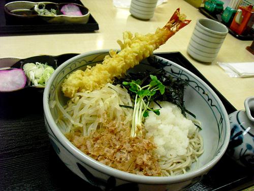 お蕎麦の上には、たっぷりの大根おろし、茹でたもやし、鰹節、きざみ海苔。