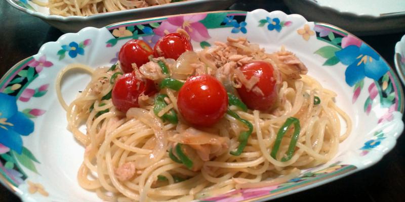 ▼【庶民のレシピ】トマトとツナの彩りパスタ
