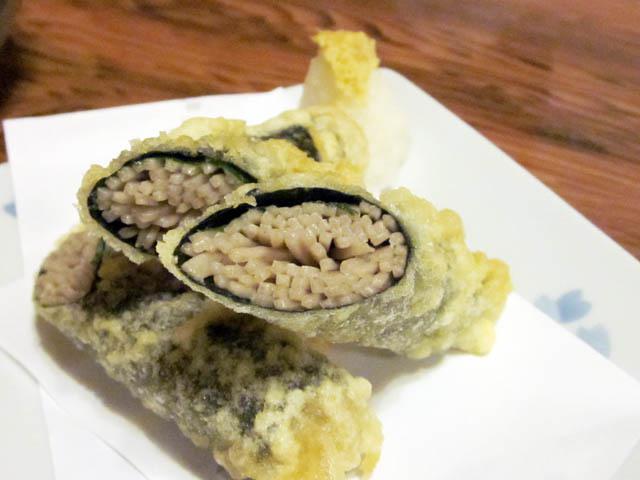 ▼「嘉司屋」もう一品には、そばの海苔巻き天ぷらを。
