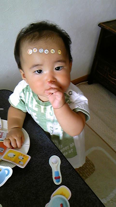 つかまり立ちはすっかり上手で、伝い歩きもするようになってきてテーブルの上なんかに物を気楽に置けなくなりました。