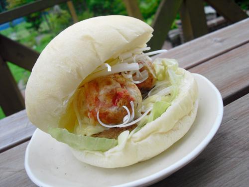 たこ焼き「くるポン」の花巻バーガーを紹介します(*´∀`*)