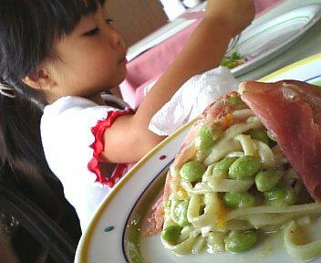 「花巻産枝豆のパスタ 生ハム添え」