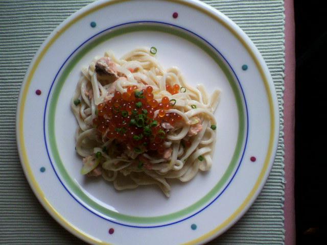 ▼これが、スモークサーモン&いくらの生パスタ〜