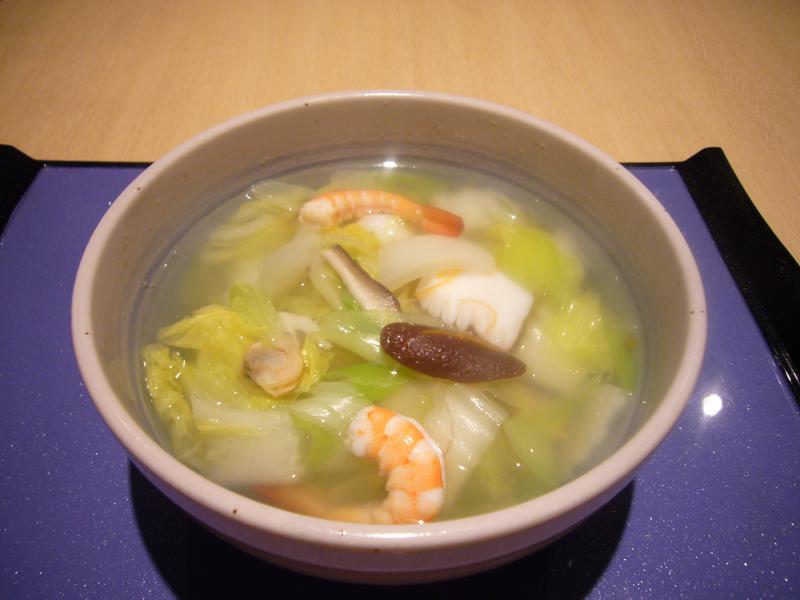 あっさりした塩ベースのスープに白菜、シイタケ、に〜んじん♪
