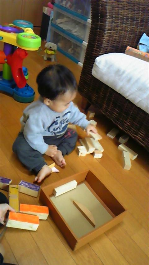 そんなソラくん、今朝静かだなーと思ったら、一人で積み木を楽しんでました(笑)