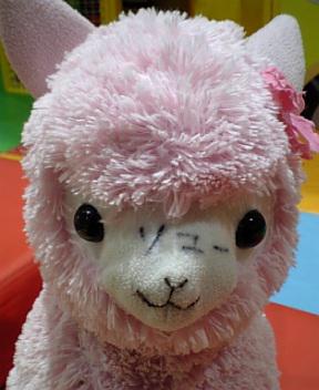 いつもお世話になっとります銀河モールのゲーセン「SOYU」にあった、可愛いピンクのアルパカのぬいぐるみ☆