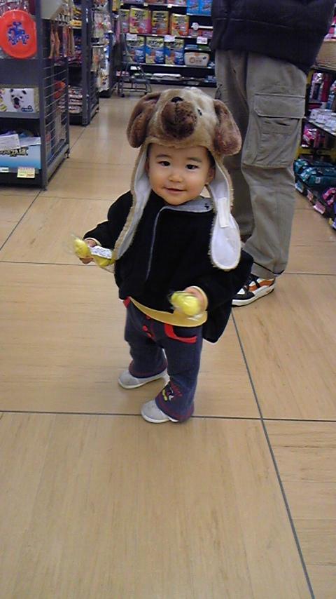 このワンちゃん帽子は甥っ子のおさがりです。