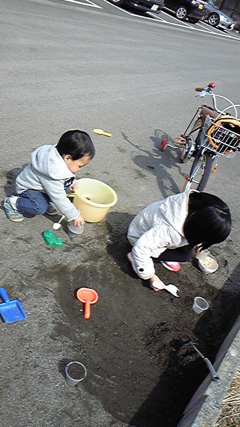 地震の停電により死んでしまった熱帯魚のお墓を作って、久々に土遊びです。