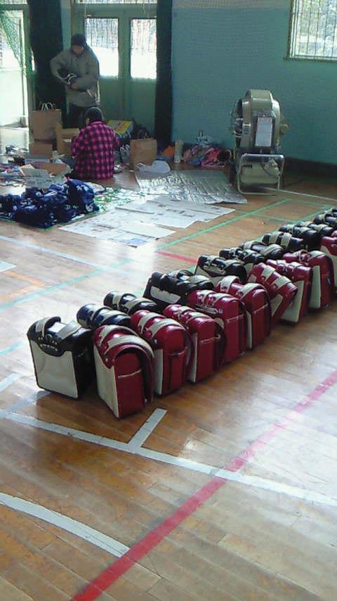 土沢小学校体育館にみなさんが持ち寄ってくださいますた〜!^^