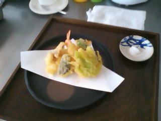 そば房かみやでは、庭(台山)で取れたてのバッケをてんぷらにしてお出ししています。