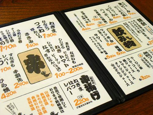 串焼きの野菜や、串揚げ(レバー、ハツ、ねぎま)など