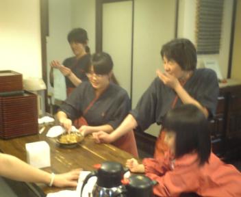 お昼の混雑も終わってホッと一息♪尾長屋さんのタコ焼きをほお張るスタッフの皆さん(^_^)毎日ご苦労様です☆