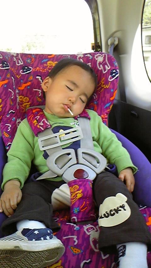 あまりの気持ちの良さに行きの車ですでに眠るソラ。撮影はカエデです(^-^)