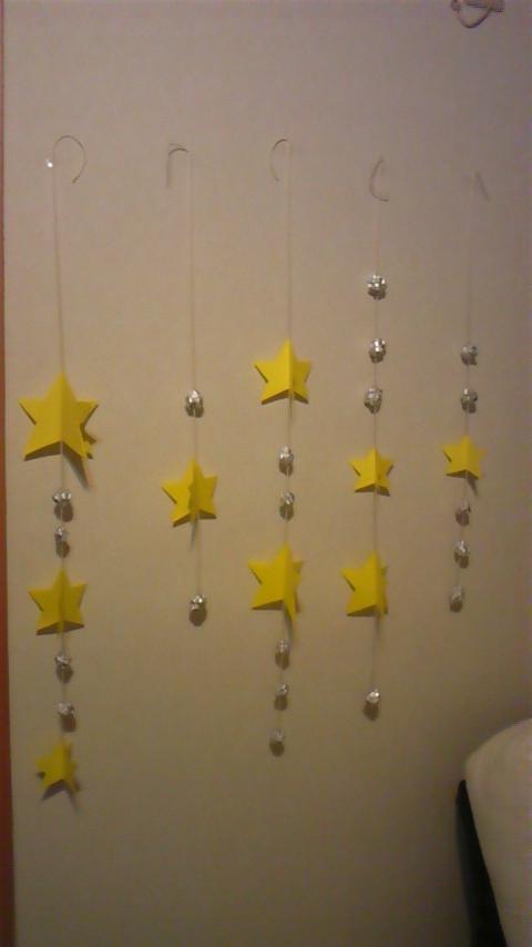 仕事で保育園のお部屋用に七夕の部屋飾りを作りましたよ☆青い色画用紙で天の川作って天井から吊します。