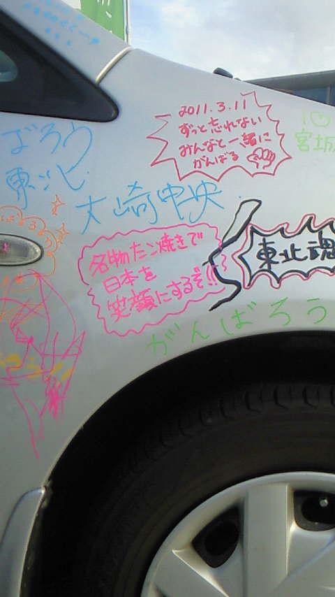 さてさて、そのイベントの一つに被災地を廻る車にコメントを書く。というのがありました!^^