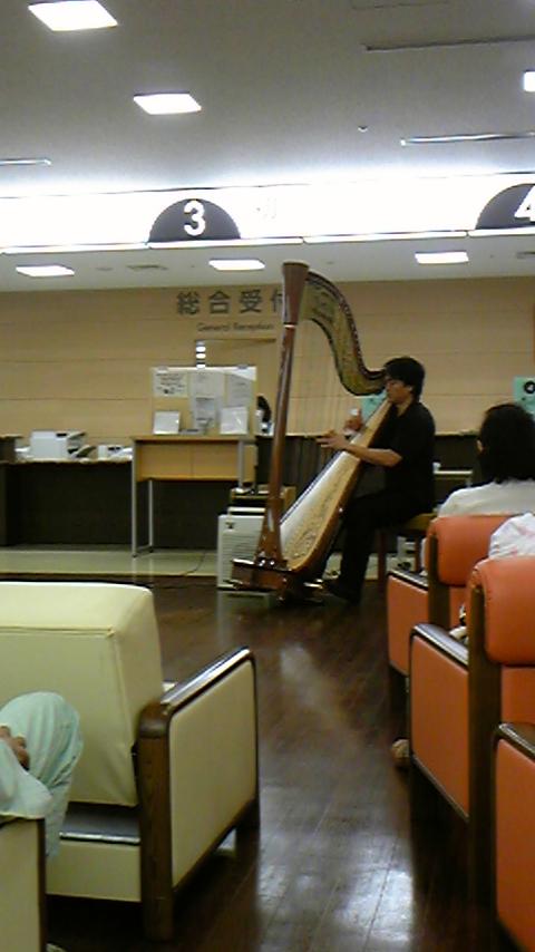夕方、病院のホールでハープのコンサートが開かれるというので、病室で飽き飽きしていた私は張りきって見に行ってきました☆