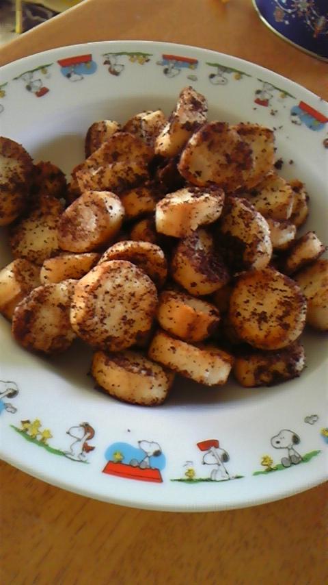 焼き色がついてカリッとしたら、きなこやココアパウダーをからめて出来上がり!!