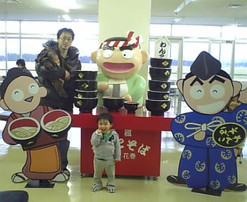 いえ、たまたまトイレを借りに行ったら「わんこ君」がいたのでみんなで写真を撮りました(笑)今回のわんこそば大会も楽しみですね♪