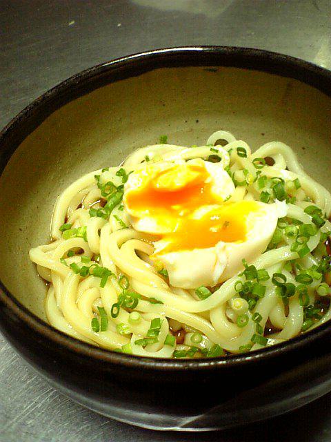 半熟玉子が甘辛の釜上げうどんに絡んで美味♪もうちょっとタレを調整して、今度まかないで出してみようかな(^_^)