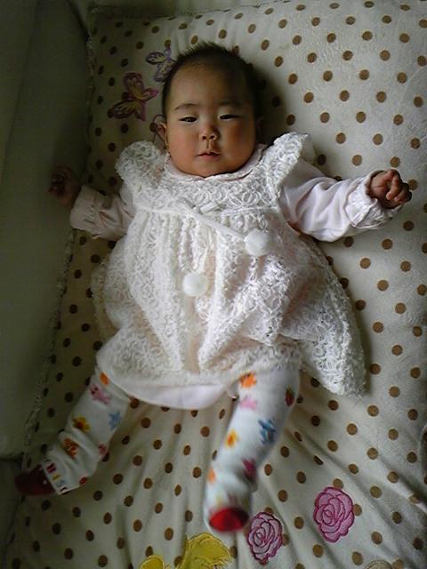 服がうんちで汚れたので、しまってあったおしゃれ着におきがえ。
