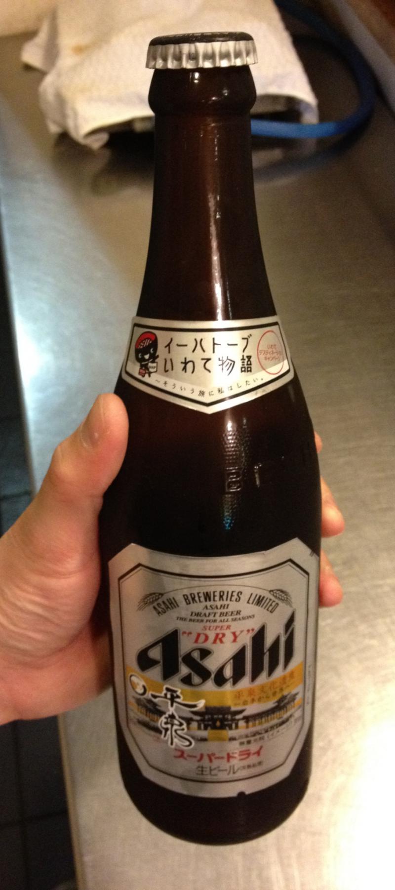 私も大好きなアサヒスーパードライの瓶も、いわてDC仕様になってました♪