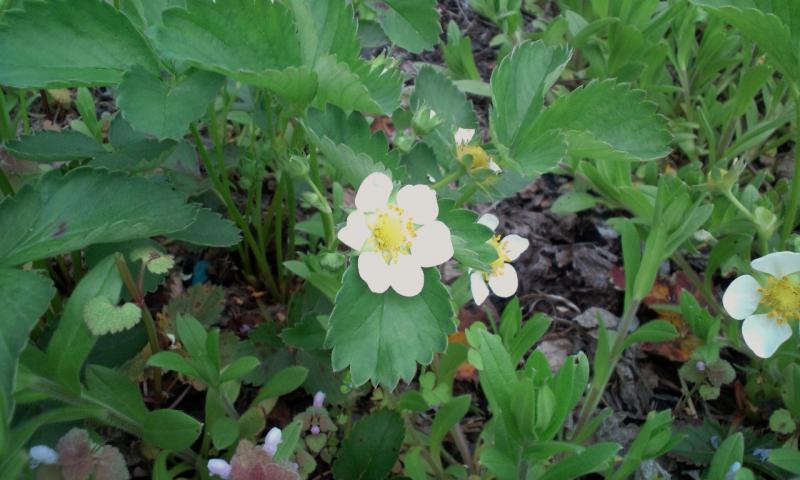 うちのイチゴ畑に、白い花が咲きました。