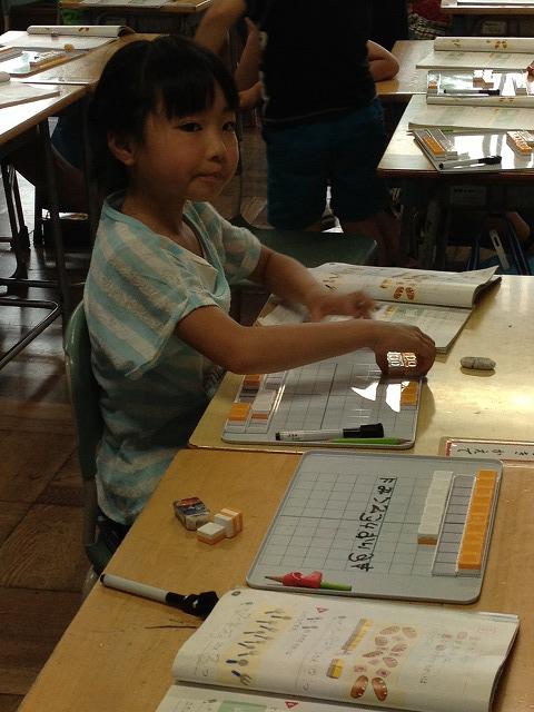写真はブロックを使って引き算の勉強をしているところ。