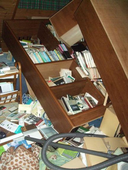 妻の死去と議員引退をきっけに初めて、“断捨離”(だんしゃり)なるものを手がけてみた。未練も容赦もない「断・捨・離」という語法に抵抗感があったが、そう長くはない将来を見据えると、ある程度の身の回りの整理はやむを得ない。猿芝居に終始した2期8年間に及ぶ議会資料はバッサリと廃棄処分に…。さて、積読も含めて約3千冊の蔵書が多いのか少ないのかは分からないが、その本の山を前にしてハタと手が止まってしまった。 7年半前の東日本大震災の際、本棚はすべて倒壊し、上掲写真のようにベットの上に総崩れになった。「3・11」のこの日は私の誕生日に当たっており、妻は八戸の魚市場「八食」まで祝宴用の買い出しに行っていた。私の方はちょうど、予算特別委員会の開会中で難を逃れた。就寝中の発生だったら、命を奪われていたかもしれない。大量の魚介類を抱えた妻も数時間かけて無事帰り着いたが、全戸停電の中でせっかくの71歳の誕生祝はお流れとなった。その妻もいまはなく、わずかに我が人生の“地層”ともいうべき蔵書の中にその思い出の片鱗を見つけ出すことができる。 「東北ルネサンス」―。なんとも心が躍るスロ−ガンではないか。私が新聞社を定年退職したのは2000年3月。当時、民俗学者の赤坂憲雄さんらが中心になって、「東北学」の必要性を提唱していた。大都市中心主義の限界を訴え、東北から変革を―という呼びかけに心が動かされた。同郷(花巻)の妻は一方で逡巡(しゅんじゅん)しつつも、次第に軸足をふるさとへ向けるようになっていた。さっそく、宮沢賢治全集を買い求め、生まれ故郷に居を移した。ともに40数年ぶりのUタ−ンだった。「ふるさと再発見」を気取りながら、ふたりで小旅行を続けた。賢治の物語世界をもっと知りたい―と、久慈市の琥珀の採掘現場(地下坑道)を案内してもらった時の感動は忘れられない。「幻想的ねぇ」と妻は歓声を上げた。 花田清輝全集、鶴見俊輔座談集、辻潤著作集、昭和史発掘…。蔵書の“発掘”作業を続けるうちに茶褐色に色変わりした各種全集類に交じって、アイヌ関連本が比較的多いのに気が付いた。「日本列島の中に異言語を話す民族がいる」―ということに興味を持ったことが端緒だった。念願がかなって北海道勤務になり、アイヌ古老の聞き書きに没頭した。こんな姿を見て、妻もアイヌ刺繍を習い覚えるようになっていた。娘夫婦が沖縄・石垣島に移住してからは沖縄関連本が増えていった。妻の沖縄行きも年数回に及んだ。孫に会いに行くのが第一の楽しみだったが、記者時代から続いた「東北」を起点とした「北」と「南」への道行きにも満足そうだった。妻が異様な空咳(からせき)を発するようになったのは、東日本大震災の直後からだった。この時にがんの前兆が始まっていたのかもしれない。そんな体調に鞭打つようにして、妻は被災者支援に打ち込んでいった。 ふるさとに移住した直後、1枚の紙片がFAXで送られてきた。「あなたはこの静かなまちを破壊するために帰って来たのか」―。差出人不明の不気味なメッセ−ジだった。70歳にして市議会議員になって以来、このことの意味が実感させられた。議会改革を叫ぶたびに、不思議なことに革新系を含む“抵抗勢力”に包囲された。石川啄木は「石をもて追わるるごとく」に故郷を追われ、室生犀星はこう詠んだ。「ふるさとは遠きにありて思ふもの/そして悲しくうたふもの/よしや/うらぶれて異土(いど)の乞食(かたい)となるとても/帰るところにあるまじや…」 強烈な排他性を突き付けられたのも同じ「ふるさと」からだった。理解ある同行者を失った今、この先、「ヒカリノミチ」をどう歩み続けたら良いものか。果たして、ひと筋でもヒカリの輝きが差し込むことはあるのか―。「ケハシキタビ」(賢治「精神歌」)を旅する、手探りのひとり旅はこれから先も続きそうである。 (写真は本棚が倒れ、周囲には本が散乱した=2011年3月11日、花巻市桜町の自宅で)