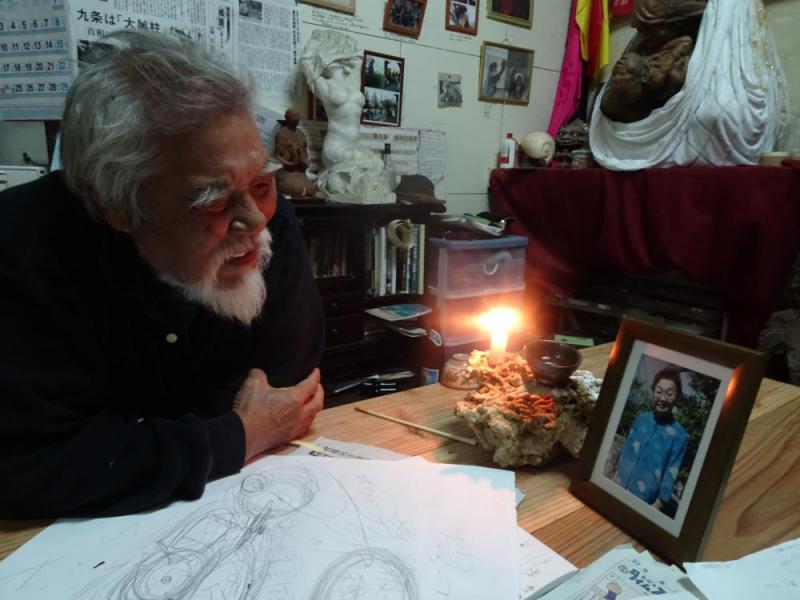 「あんたが来るっていうので、今朝、近くの海岸を散歩していた時に見つけたんだよ。9月の台風で流れ着いたと思うんだが、ジュゴンになった奥さんはきっと、こんなサンゴ礁の世界に生きているはずだよ」―。沖縄・読谷村在住の彫刻家、金城実さん(79)はこう言って、妻の遺影の前にサンゴを置き、ろうそくと線香をともした。私の沖縄の旅はいつも“金城節“を聞くことで最終章を迎える。反戦・反基地・反差別の彫刻家として知られる金城さんの話には沖縄の受難の歴史がびっしりと詰まっているからである。今回はこれに妻の弔いが加わった。供えられた泡盛の香りがあたりに漂った。 「電話では何回か話をする機会はあったが、お会いできなかったのが残念だ」と金城さんは話し、ジュゴンの化身として死後を生きる妻の姿をスラスラっとデッサンした。さすがは彫刻家である。アトリエのまわりには様々な表情をした野仏がずらりと並んでいた。近くに沖縄戦で住民が集団自決(強制集団死)した自然壕(ガマ)「チビチリガマ」がある。避難した約140人のうち、83人の住民が非業の死をとげた。昨年9月、まだ遺骨が残っているガマが荒らされた。県内に住む16歳〜19歳の少年が器物損壊の疑いで逮捕された。少年たちは「心霊スポットだと思った」と自供した。保護司に任命された金城さんは沖縄戦の記憶を野仏に託すことにし、少年たちと一緒に制作した。いま、12体がガマの周辺に安置されている。 沖縄国体(1987年)の際、読谷村のソフトボ−ル会場に掲げられた日の丸を引き下ろして焼いた事件で、当時の沖縄の置かれた立場を訴えた知花昌一さん(70)は現在、僧侶の資格を有し、民宿も経営している。金城さんを訪問する際の常宿でもある。平和運動を続けている知花さんが言った。「やんばるの森の中に山小屋がある。沖縄が好きだったという奥さんの供養をそこでやらせてほしい」。金城さんも同行することになった。妻とは生前、辺野古の現場やヘリパット(垂直離着陸機)の着陸基地の建設が強行された「高江」を訪れたことがある。山小屋はその現場に近い大宜味(おおぎみ)村にあった。夕日が沈む眼下に、美しいサンゴ礁の海と白い砂浜で知られる古宇利島(こうりじま)が見えた。知花さんの読経が濃い緑が織りなす森の中に響いた。「良かった。弔いの旅に同行できて、オレもうれしいよ」と金城さんが小さな声でつぶやいた。 「琉球人遺骨返還、京大を提訴/尚氏子孫ら、自己決定権訴え」(12月5日付「琉球新報」)―。妻の散骨を終え、石垣島から沖縄本島に移動した5日、社会面トップにこんな記事が載っていた。1929年、京都大学(旧帝大)の人類学者らが今帰仁村(なきじんそん)の百按司(むむじゃな)墓から持ち出した遺骨の返還を求めて、「琉球民族遺骨返還研究会」(松島泰勝代表)が京都地裁に提訴したことを伝えていた。原告団は「現在も続く日本の植民地主義を許さず、琉球の人々が自己決定権を行使する裁判だ」と主張していた。原告のひとりに金城さんも名前を連ねていた。 2年前、同じように研究用に供されていたアイヌ民族の遺骨12体分が85年ぶりに墳墓の地(アイヌコタン)に再埋葬された。返還訴訟で札幌地裁と和解が成立した結果で、このほかに全国12大学に1636体と、特定できない515箱分のアイヌの遺骨が収蔵されていることが判明している。同様の裁判は北海道の各地で続いており、今回の琉球人遺骨返還訴訟はこれに続くものとして注目される。21年前、先住民族の権利を主張して起こされた「二風谷(にぶたに)ダム建設」裁判で、札幌地裁は民族的マイノリティの権利保護を定めた国連自由規約に基づき、アイヌ民族を初めて「先住民族」として認める画期的な判断を下した。 「そう、この列島の北と南からヤマト(本土=内地→中央)の支配原理をあばき出す。その原点の戦いがいま、始まったのさ」―。金城さんの覚悟が伝わってきた。もうひとつの大きな運動が同時に開始されようとしている。妻にふさわしい弔いの旅のフィナ−レだと思った。 (写真は拾ってきたサンゴを飾り、妻の遺影に語りかける金城さん=12月8日午後、沖縄県読谷村のアトリエで)