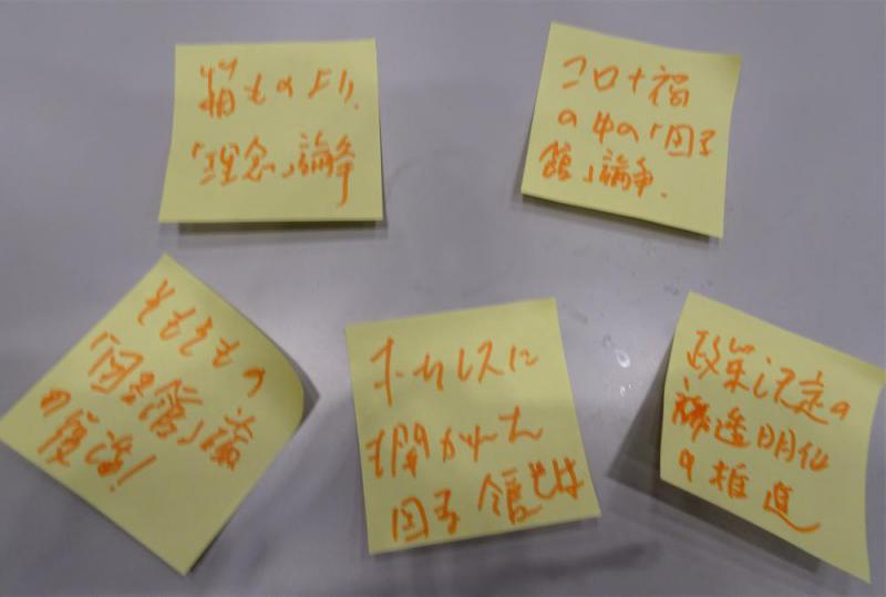 「すべての市民が親しみやすく、使いやすい環境に配慮した図書館」→「すべての市民が親しみやすく、使いやすい図書館」…。図書館立地の重要なキ−ワ−ドのひとつである「環境に配慮した」という部分がそっくり消えてしまっているのをうっかり、見過ごすところだった。13日に開かれた第2回「としょかんワ−クショップ」で、「新花巻図書館整備基本構想」(平成29年8月)が検討資料として配られた。この下敷きになったのがその5年前、花巻図書館整備市民懇話会がまとめた「花巻図書館への提言」(平成24年10月)。その中の三つの基本コンセプトのひとつが冒頭に紹介したキャッフレ−ズである。直感的にこの改変にある種の作為を感じた。 基本構想にはこうある。「図書館は市街地再生に資する施設として、まちづくりや都市計画とも整合したものとする必要がある。当市は平成28年6月に市街地の定住化を促進し、市街地に都市機能を誘導する『花巻市立地適正化計画』を作成し公表したが、新しい図書館はその中で『都市機能誘導区域』に整備することし…」―。そして、今年1月29日に突然、天から降ってきた、賃貸住宅付き図書館の駅前立地という“青天の霹靂(へきれき)”構想(「新花巻図書館複合施設整備事業構想」)を巡って、市議会と市当局とはいま、全面対決の様相を呈している。一般市民だけではなく、ワ−クショップの参加者たちさえ、この複雑極まる転変に付いていけない様子だった。頭を整理するため、以下に経緯を整理してみたい。 ※ *「花巻図書館整備市民懇話会」設置(平成23年=2011年12月)*「花巻図書館への提言」(平成24年=2012年10月25日)*「花巻中央図書館基本計画」策定(平成25年=2013年5月28日〜「こどもの城」構想との複合化*上田東一市長が初当選(平成26年=2014年1月26日)*建設予定地の「花巻厚生病院跡地」で土壌汚染が発覚。上記計画の中断・断念(平成26年=2014年3月)*「都市再生特別措置法」の一部改正で、国がコンパクトシティを進めるための「立地適正化計画」を創設、策定を促す(平成26年=2014年8月)*「まちづくりと施設整備の方向―立地適正化計画による都市再構築の方針(案)」(平成26年=2014年11月)〜上田市長が初めて、図書館構想に言及。「図書館は整備や運営の手法、まちづくりの核として、そのあり方の多様化が全国で見られることから、都市機能誘導区域内に移転するとともに、市街地の振興に資する機能を付加することを検討する」*全国で3番目に「立地適正化計画」を策定(平成28年=2016年6月)*「新花巻図書館整備基本構想」策定(平成29年=2017年8月)*「新花巻図書館複合施設整備事業構想」策定(令和2年=2020年1月29日)*当局側が図書館関連予算を含む「令和2年度一御案会計予算案」を撤回(令和2年=2020年3月9日)*議会側が「新花巻図書館整備特別委員会」設置(令和2年=2020年3月18日) ※ 以上の経緯を踏まえ、私は「立地適正化計画に基づく図書館の市街地への立地は自然環境の確保の面で共存はなかなか難しいのではないか。そのために、この文言をあえて削除しなければならなかったのではないか。そう考えた方が整合性がある」とただしたのに対し、市川清志・生涯学習部長は「環境に配慮して…という文言があえてなくても全体の文意は伝わると思った」とケロリと言ってのけた。消えた「環境への配慮」は別の文脈で、こんな形で息を吹き返していた。「自然エネルギ−の活用を検討し、照明器具や冷暖房設備など省エネルギ−の施設とする」―。「詭弁」(きべん)とさえも言えない、市民を小バカにした言い草ではないか。緑に囲まれた閑静な空間と「賑わい」拠点の創出が両立しないことは子どもでも分かる理屈である。つまり、立地適正化計画による市街地活性化はそもそもが「環境への配慮」とは相容れない発想だったのであり、だからこそ今回の「駅前立地」に当たっては、このキーワードの削除が必要だったのであろう。正直にそう言えばいいだけの話しである。 この日のワ−クショップは時節柄、全員がマスクを着用し、ソ−シャルディスタンスを保ちながら、進められた。マスクを通したくぐもった声で、私は自らの基本的なスタンスについて、こう意見表明した。「誰もが逃れることのできないコロナ禍の中にいま、私たちは生きている。今度またいつ、パンデミックに襲われるか予想すらできない今こそ、図書館のあり方も根本から考え直さなくてはならないと思う」―。反応はほとんどなく、何か呆気にとられたような空気が会場に流れた。この発想の転換については、その道のプロに語ってもらった方が的を得ていると思う。図書館プロデュ−スの達人として知られる岡本真さん(アカデミック・リソ−ス・ガイド代表)はこう語っている。 「端的に言えば、図書館の集客機能がまちづくりの文脈で評価・尊重されてきましたが、新型コロナの感染拡大を防ぐには、図書館においても、むやみに人を集められない、かつ長時間の滞在が好ましくない、さらに交流自体を