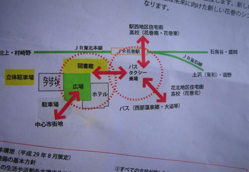 「突然起こる事変や大事件。青く晴れわたった空に突然、雷が鳴り響くことから」―。「青天の霹靂(へきれき)」について、広辞苑はこう説明している。上田(東一)“強権”市政がいつの間にか、“霹靂”市政というもうひとつの仮面をかぶっていたことが明らかになった。「賃貸住宅付き図書館の駅前立地」という、いわゆる“上田私案”を「最善」としてきた新花巻図書館について、当局側は15日に開かれた市議会議員説明会で改めて5か所(パターンとしては7通り)を立地候補地として提示した。 このうち、旧総合花巻病院跡地など3か所が市役所に隣接した「まなび学園」(生涯学園都市会館)周辺地区で、元女学校を改修したこの施設は現在、シニアのサ−クル活動などに利用されている。当局側はこの日の説明で、この一帯に図書館を立地する場合は周辺道路の改良工事や既存の体育館の撤去などが必要となり、「オ−プンは早くて6年後の令和8年4月、場合によっては令和10年にずれ込む」という見通しを明らかにした。さらに「仮に」という前提付きで、将来、市役所庁舎をこの場所に移転した場合の見取り図も資料として示した。新市役所は5階建てが想定されており、床板面積は全体で1万5千平方メ−トルになるという具体的な数字まで挙げた。 市庁舎の移転計画についてはこれまでも複数の議員が当局側の見解をただしてきたが、「長寿命化を図りながら、現庁舎を維持したい」という答弁を繰り返し、移転・新築計画については一切、言及してこなかった。ところが、この日突然「上田イカズチの神」の雷鳴がとどろいたと思った瞬間、頭上から“市役所”が舞い降りてきたという次第である。スポ−ツ界に「フェイント」という用語がある。タイミングをはずすなど相手の意表をつく見せかけの動作や攻撃を指す。結局は他候補地の「ダメ出し」を続け、「やっぱり、駅前立地しかない」という着地点にたどり着きたいという算段がミエミエ。 当局側はこの日のうちに、議員説明会での膨大な説明資料を一挙にHPにアップしたが、このこと自体が異例のことである。さらに、市役所の”移転の件”については、取ってつけたように「あくまでも、規模感をとらえるための、土地利用方法の 一案であり、このような構想があるものではありません」と注釈しているが、逆にネガの裏側が透けて見えるようではないか。世間ではこのことを「藪(やぶ)をつついて蛇を出す」(藪蛇)という。余計なことをして状況を悪くする、しなくてもよいことをして危難に遭うことなどを意味する。そういえば、「藪から棒」という似たような言い方もあったなぁ。“ご飯論法”だけではなく、こんな奥の手もあったというわけである!?イヤハヤ、油断も隙(すき)もあったもんじゃない。 (写真は「これが最善」として、今年1月末に示された「駅前立地」の図面=JR花巻駅前のJR所有のタケダスポ−ツ店跡に建設される予定になっている)