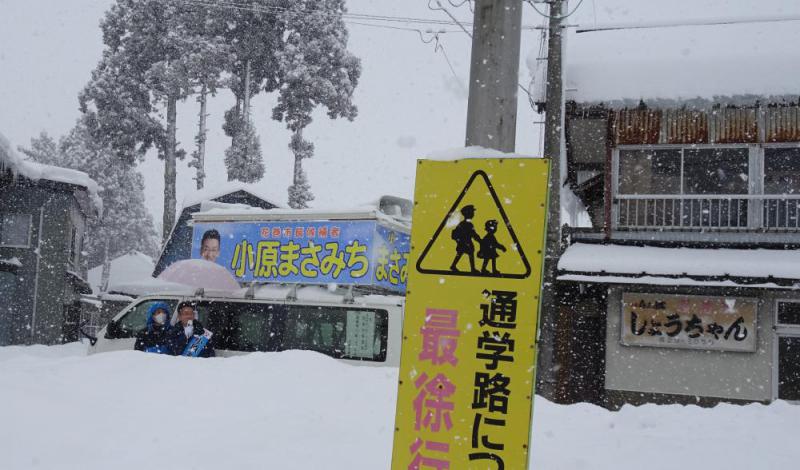 ♪日ハ君臨シ/カガヤキハ/白金ノアメ/ソソギタリ/ワレラハ黒キ/ツチニ俯(ふ)シ/マコトノクサノ/タネマケリ…日ハ君臨シ/カガヤキノ/太陽系ハ/マヒルナリ/ケハシキタビノ/ナカニシテ/ワレラヒカリノ/ミチヲフム♪(宮沢賢治「精神歌」)― 今回の選挙戦最終日(1月22日)午後3時12分、私は先導車の中から次のようなライン発信をした。「足下に何か、地殻変動みたいな予兆を感じる。そのシグナルは町いく人たちの、ちょっとした仕草の変化である。まさみちさんに向けられる身ぶり手ぶりがどんどん、大胆になっている。身震いするような感覚―。『イ−ハト−ブ』(夢の国)への第一歩を踏み出しているのかもしれない」 分厚い雪に埋もれた「イ−ハト−ブ」の世界に20,792粒の「マコトノクサノタネ」がまかれた。今回の花巻市長選で敗北した小原雅道氏(61)が雪中を這いまわるようにしてまいた、ひと粒ひと粒である。私自身、その「マコトノクサノタネ」のひと粒たらんと欲す。20,792粒の「タネ」たちはいま「ケハシキタビ」の中途にいるが、やがて萌芽をへて、いっせいに花を咲かせるにちがいない。立春はもう目の前である。 「2022年1月22日15:12」―。私はこの瞬間の気持ちを永遠に心の奥底に刻み続けたい。「種蒔(ま)く人」(ミレー)がいなければ、花は咲かない。「イーハトーブ」のミレーはまさみちさん、その人であった。 《追記―1》〜「イーハトーブ」のミレ―と「種蒔く人」(コメント欄に写真) 19世紀フランスの画家、ジャン・フランソア・ミレーは1850年、マタイ伝の教えを「種蒔(ま)く人」という連作で表現した。今度は「イーハトーブ」のミレーが今回の選挙戦で語りかけた言葉に、私たちが耳を傾ける番である。その聖書にはこうある。 「ある日、種をまく人が、種まきに行った。まいているときに、1つの種は道端に落ちたが、鳥がそれを食べてしまった。また、別の種は石だらけで土の少ないところに落ち、一旦はすぐに芽を出した。ところが、土が少ないため充分な根っこを張ることができず、太陽が出てくると枯れてしまった。また、別の種はイバラの間に落ちたが、イバラが伸びて覆(おお)いふさいだので実を結ばなかった。ところが、別の種は耕(たがや)された良い土地に落ち、実を結んで、あるものは100倍、あるものは60倍、またあるものは30倍にもなった。耳のある人は聞きなさい」(マタイによる福音書第13章) 《追記ー2》〜市長選の票数は何を物語っているのか(コメント欄に写真) 今回の市長選で3選を果たした上田東一氏が初陣(2014年)の際、当時3選を目指した現職を破った時の得票数は31,749票で、11,198票差の大勝だった。無投票を1期をはさんだ今回の得票数は22,676票で、初陣に比べて9,073票減らした。一方、3選阻止に挑戦した小原雅道氏の得票数は20,792票で、その差は1,884票の僅差だった。この数字は何を意味するのか。 選挙戦に密着取材した私は中盤戦のある日、玄関を開けて手を振っている女性に気が付いた。私が知的障がい者施設の園長をしていた時の入所者だった。候補者は選車から飛び出し、すぐに駆け寄った。真っすぐに相手の目を見つめ、がっちりと握手する姿をとっさにカメラに収めた。「誰ひとり取り残さない、優しさを後回しにしない」(リーフレットから)。「20,792票」の1票1票は候補者に「変革」を託す票の積み重ね……まこと、賢治がいう「マコトノクサノタネ」(精神歌)なんだと、確信した瞬間だった。言葉の真の意味で、小原雅道氏は今回の市長選に「勝った」と私は思っている。 (写真は雪の壁に阻まれながら、街頭演説をする小原氏=1月18日、花巻市の笹間地区で)