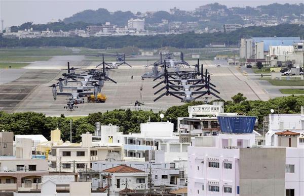 「5年前の東日本大震災の際も賢治の詩『雨ニモマケズ』に背中を押されるようにして、世界中から支援の手が差し伸べられました。私自身、宮城県気仙沼市で被災しましたが、賢治精神のその善意に支えられてこれまで頑張ってくることができました。現在は当市に居を移してお世話になっていますが、賢治精神の大切さを改めて実感させられる毎日です」―。沖縄の日本復帰50年の15日、私は「3・11」でふるさとを追われた日出忠英さん(80)の基地削減を訴える切々たる請願書の文面を身を引き締めて読み直した。 沖縄はこの日、戦後27年間に及ぶ米国の統治下から復帰して50年の節目を迎えた。しかし、先の大戦で唯一地上戦の舞台となった沖縄では県民の4人に1人が犠牲となり、現在もなお米軍基地の約7割が集中している。こうした現状を憂えた日出さんは平成28(2016)年6月、花巻市議会に対し「(基地の根拠規定になっている)日米地位協定の抜本的な見直し」―を求める請願書を提出した。「基地を一方的に押しつけられ、日々犯罪の恐怖におびえ続けなければならない沖縄県民の心に寄り添い…」と日出さんは訴えたが、議会側は国の“専管事項”を盾に門前払いをした。 それにしても「雨ニモマケズ」の神通力にはかなわない。何しろ「東西南北」の全方位に不幸や災いがあったら、そこに「行ッテ」寄り添えとそそのかす。私自身、この“挑発”に乗せられて何度、沖縄の地に足を運んだことか。沖縄通いを続けてきた私は市議になりたての平成22(2010)年12月定例会で「賢治精神をまちづくりのスロ−ガンに掲げる当市として、沖縄の米軍基地の訓練の一部を肩代わりする考えはないか」と問うた。本来ななら、この種の議論を先導するはずだと思い込んでいた、あさっての方向から矢玉が飛んできた。 「(沖縄における)女性暴行などの米兵による犯罪と騒音被害は想像を絶しており、花巻市民がそれを受け入れなければならない理由などありません」(共産党市議の議会報告から)。この気の遠くなる認識の乖離に腰を抜かした私は折り返し、公開質問状を送った。「沖縄の痛みを自分自身の問題としてとらえ、1人ひとりが真剣に沖縄の現実に向き合うべきではないのか―。こともあろうに革新を標榜する公党がわたしの言いたかったことの趣旨を理解できなかったのだとすれば、それはもはや驚くべきほどの『想像力の欠如』と言わざるを得ない」― 「他人事」から「自分事」へ―。賢治の「行ッテ」精神の真髄はここにあるという考えに変わりはない。それどころか、収束の見通しも立たないコロナ禍や残酷無比なウクライナ戦争を目の当たりにする今こそ、この精神の大切さを思い起こす必要があるのではないか。しかし、賢治の理想郷「イ−ハト−ブ」はどうも真逆な道行きを辿っているように思えてならない。「雨ニモマケズ」をもじった「弾ニモマケズ」などという大政翼賛的な愚劣なパロディが(上田)市長周辺でもてはやされたと思ったら、「ロシア侵攻」に反対する市議会決議(3月4日)の原文から、賢治の代表的な平和メッセ−ジ…「世界がぜんたい幸福にならないうちは個人の幸福はあり得ない」(『農民芸術概論綱要』)という一節がいつの間にか消えてなくなるという“椿事”も起きている。 この日の復帰50年記念式典で、天皇陛下は以下のようなお言葉を披露した(要旨)。「大戦で多くの尊い命が失われた沖縄において、人々は『ぬちどぅたから』、命こそ宝の思いを深められたとうかがっていますが、その後も苦難の道を歩んできた沖縄の人々の歴史に思いをいたしつつ、この式典に臨むことに深い感慨を覚えます。沖縄には今なお様々な課題が残されています。今後、若い世代を含め広く国民の沖縄に対する理解がさらに深まることを希望するとともに、今後ともこれまでの人々の思いと努力が確実に受け継がれ、豊かな未来が沖縄に築かれることを心から願っています」 お言葉の中の「課題」とは「過重な米軍基地の存在」などを指すものと思われ、”政治的な発言”を避けるための言い回しだと専門家は指摘。さらに「課題」に触れられたのは初めてのことだという。とまれイ−ハト−ブはいま、深刻な根腐れ病に犯されているのは間違いなさそうである。 (写真が住宅地に接するようにオスプレイが駐機する米軍普天間飛行場(宜野湾市)。辺野古(名護市)への移設工事が進んでいる=インタ−ネット上に公開の写真から)