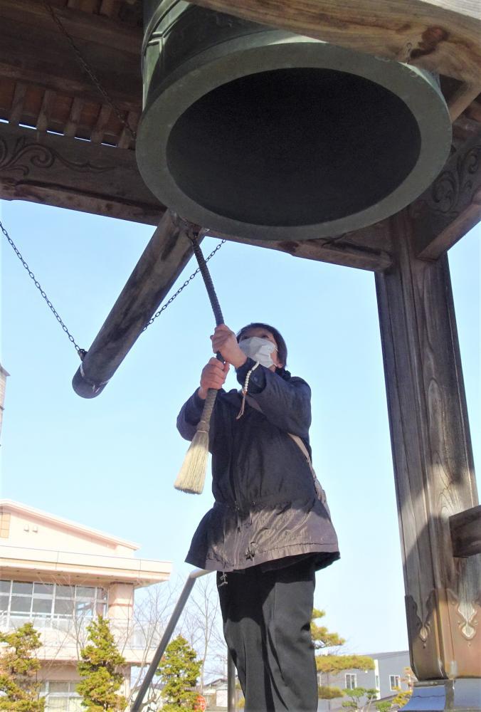 東日本大震災から12年(13回忌)のこの日、私は83歳の誕生日を迎えた。「3・11」というこの日付の符合が単なる偶然ではなく、「忘れるな」という“必然”の理(ことわり)のような気がする。私たち有志は震災直後に支援組織「ぼくらの復興支援―ゆいっこ花巻」を立ち上げた。その設立趣旨書はこう結ばれている。「何をやるべきか、何をやらなければならないか。走りながら考え、みんなで知恵を出し合おうではありませんか。試されているのは私たち自身の側なのです」 午後2時46分―。花巻市内の妙円寺では12年前のこの時刻に合わせ、被災者や支援者が鐘を突きながら、手を合わせた。福島第一原発に近接する南相馬市小高地区から移住した泉田ユキイさん(79)の姿もあった。「愛犬のコロを残したまま、避難してきたことが悔やまれて…。で、避難が一時解除された約1か月後に連れ帰った。放射能まみれの体に熱湯をかけて洗い流したけど、1年後に死んでしまった」―。12年前の会話が昨日のことのようによみがえった。「白骨化した牛の死骸、骨と皮になってヨロヨロとさ迷う牛の群れ、餓死した犬や猫…。置き去りにされた犬同士が産み落とした子犬は人間という存在さえ知らないらしいの。原発事故は許せないけど、人間の業(ごう)みたいなものも感じてしまって…」 「震災その後」はある意味で、記憶の風化との抗(あらが)いの時空である。「『あの日』に何があったかも大切かもしれないけれど、『その後』どうしていくかが文学的には大切だろうと思っていた。大事なのは戦争文学ではなく戦後文学、震災文学ではなく震災後文学であろうと」(3月10日付「朝日新聞」木村朗子・津田塾大教授)―。12年の節目を前にして、今年の芥川賞受賞作『荒地の家族』(佐藤厚志著)とベルリン国際映画祭に参加して注目されたアニメ映画『すずめの戸締り』(新海誠監督)と向き合った。「『その後』に終わりはない。それは永遠に続く」というメッセ−ジに深く納得した。 私の身辺の「その後」にも当然ながら、色んなことがあった。妻と死別し、多くの友人・知人に別れを告げた。そして、母親と妻、一人娘を津波に奪われ、行方不明のままだった大槌町の知人、白銀照男さん(享年73歳)が3人の”帰還”を待ちくたびれたかのようにして、昨年12月21日に旅立った。さらに、この日の震災追悼式の祭主を務めるはずだった同寺の住職、林正文さん(享年87歳)も先月15日、鬼籍の人となった。生々流転(せいせいるてん)…。月並みながら、こんな言葉が去来する。「3・11」が巡りくるたびに私はそっと、「死その後」ものぞいてみたくなる。そして、思う。「そこにはきっと、再生の光も見えるはずだ」―と (写真は梵鐘を突く泉田さん=3月11日午後、花巻市愛宕町の妙円寺境内で)