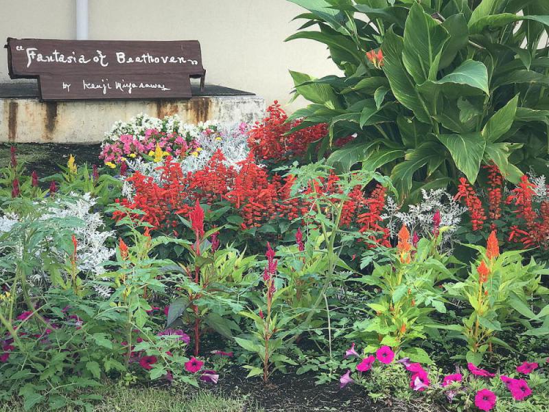 東日本大震災の際、米国の首都・ワシントン大聖堂で開かれた「日本のための祈り」やロンドン・ウエストミンスター寺院での犠牲者追悼会などで、英訳された「雨ニモマケズ」が朗読された。また、この詩に背中を押されるようにして、世界中からボランティアが被災地へ駆けつけた。そしてまだ、復旧のメドさえついていない能登半島地震の被災地でもこの詩に詠われた「行ッテ」精神が被災者を勇気づけている。そして今度は、追い打ちをかけるようにして宮崎・日向灘地震。さらに、海の向こうでは… 「世界がぜんたい幸福にならないうちは個人の幸福はあり得ない」(『農民芸術概論綱要』)―。ウクライナやガザ…世界全体の悲しみの地にこのメッセージを届けたい。「平和」を希求する賢治の心の叫びを積み込んだ「銀河鉄道」…新図書館こそがその始発駅にふさわしいと思う。この列車が銀河宇宙の旅に出て、今年でちょうど100年を迎える。 「豊かな自然/安らぎと賑わい/みんなでつなぐ/イーハトーブ花巻」―。当市は「将来都市像」をこう描いている。いうまでもなく、「イーハトーブ」とは賢治が未来に思いを馳せた「夢の国」や「理想郷」を意味する言葉である。一方、図書館学の父とも呼ばれるインド人学者のランガナータンは「図書館は成長する有機体である」と述べている。そして、賢治もまた、『春と修羅』の序をこう書きだしている。「わたくしといふ現象は仮定された有機交流電燈のひとつの青い照明です(あらゆる透明な幽霊の複合体)」―。ことほど左様に、「まるごと賢治」図書館(IHATOV・LIBRARY)が目指す”夢の図書館”は世代を継いで成長し続ける永遠の有機体である。自らを「幽霊の複合体」と称してはばからない、この天才芸術家のその”お化け”の正体を暴いてみたいというのが偽らざる気持ちである。 旧病院の中庭に「Fantasia of Beethoven」と名づけられた花壇があった。設計者の賢治は「おれはそこへ花でBeethovenのFantasyを描くこともできる」(『花壇設計』)と大見えを切って、こう豪語した。「だめだだめだ。これではどこにも音楽がない。おれの考へてゐるのは対称はとりながらごく不規則なモザイクにしてその境を一尺のみちに煉瓦(れんが)をジグザグに埋めてそこへまっ白な石灰をつめこむ。日がまはるたびに煉瓦のジグザグな影も青く移る。あとは石炭からと鋸屑(おがくず)で花がなくてもひとつの模様をこさえこむ。それなのだ」 「賢治とは一体、何者なのか」ー。いざ、「イーハトーブ」の建国に向けて… 《終わりに》 私は“賢治教”の信者でも、いわゆる「オタク」でも、ましてや当然研究者なんかではない。かといって、賢治嫌いでも食わず嫌いでもない。『注文の多い料理店』にうぅ〜と唸ったり、『風の又三郎』と一緒に風に飛ばされたり、『銀河鉄道の夜』の無辺空間に腰を抜かしたりする、普通の賢治好きである。それがどうして、「IHATOV・LIBRARY」(「まるごと賢治」図書館)などという大風呂を広げたかというと…。ひと言でいってしまえば「もったいない」からである。 現役市議時代、視察先の自治体関係者から「御市には賢治さんがいらっしゃるから、まちづくりも賢治さん頼みでOK。うらやましい限りです」としょっちゅう言われたことを思い出す。ところがである。「賢治まちづくり課」とは名ばかりで、最近では賢治を”食い物”にして、ふるさと納税を肥え太らせようとする“錬金術”が目に余るようになった。「賢治最中」や「よだかの星」、「山猫軒」…。この程度のお茶受けならまだ許せるが、(前掲『花壇工作』の賢治ではないが)新手の“詐欺手法”にこの「おれ」もついに切れたのである。で、どうせなら、ガブッとまるごと「賢治」にかぶりついてみたいという欲求が押さえきれなくなったという次第である。だから、「まるごと賢治」図書館… 「あなたにとって、賢治さんとは何ですか」と問われた際、私は「希代まれなる詐欺師ではないか」と答えることにしている。そんじょそこらの寸借詐欺師とはちがって、この大詐欺師に“騙(だま)された”と思うと、得も言われぬ清々しい“充実感”に満たされるからである。騙されたいという欲求はもしかしたら、“賢治教”のもうひとつの亜種なのかもしれないなぁ。 (写真はかつて、総合花巻病院の中庭にあった賢治の花壇「Fantasia of Beethoven」。この旧病院跡地に新図書館が完成した暁にはその入り口付近にぜひ、復元してほしいと願う=インターネット上に公開の写真から) 《追記ー1》〜冷酷な侵略者も、血も涙もない……暴君も、記憶を、記録を、そしてそれらを歌にして時に刻む言葉を、恐れている(師岡カリーマ・エルサムニー) 「パレスチナ・ガザ地区については、その現況と歴史的経緯を伝えて民の保護を訴える声に、沈黙を強いる圧力が多方向からかかる。だが『ガザの蹂躙(じゅうりん)が許される世界は、誰にとっても安全ではない世界』だと、文筆家は言う。だから私たちもあ